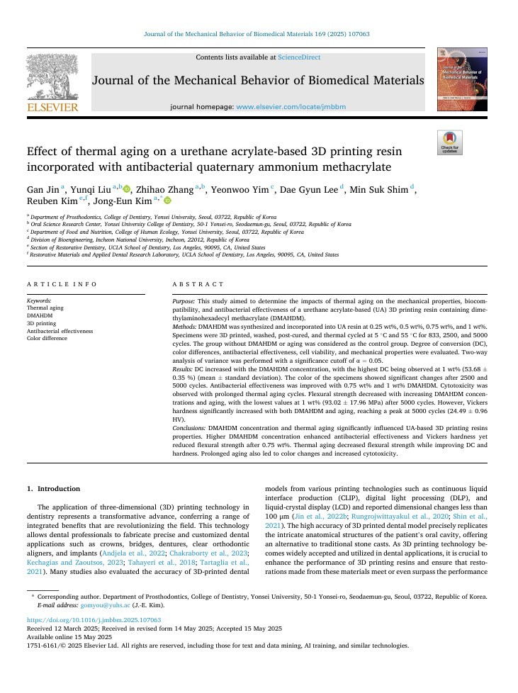 Yonsei University Dental Biomaterials Institute (2023–2025)